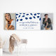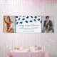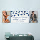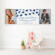 Banner moderno de la fiesta de graduación conjunta con un fondo blanco simple que se puede cambiar a cualquier color, 2 fotos de los graduados, gorras de mortero azules cayendo y una plantilla de texto moderna que es fácil de personalizar.