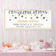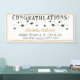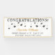 Cartel de felicitaciones de graduados con el nombre del graduado. Este banner está diseñado con un guarnecido de color dorado, con tapas de grad en un fondo blanco. El texto incluye: ¡Felicitaciones!, El nombre y título del graduado. Para personalizar simplemente inserte sus detalles en nuestra plantilla, reemplazando el texto de ejemplo.