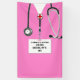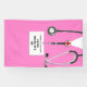 Diseño de graduación de médicas que incluye exfoliaciones de hospital rosado para un evento de graduación de escuela médica o fiesta de celebración. Para personalizar el texto de edición para agregar el nombre del médico y las credenciales médicas.