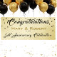Cartel de la recepción del 50° Aniversario del Boda de Oro decorado con un elegante texto: Felicitaciones, los primeros nombres de las parejas y la celebración del 50° Aniversario, sobre un fondo dorado con confeti en forma de corazón. Para personalizar, simplemente inserte su texto en nuestra plantilla sencilla, reemplazando el ejemplo.