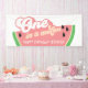 Cartel de primer cumpleaños de One In a Melon. Diseñado para este especial de un año de edad y perfecto para un patio o fiesta de parque de verano.