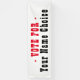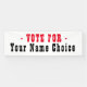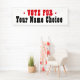 Di Vota por candidato electoral con un gran cartel. Redacción de color rojo y negro sobre blanco.