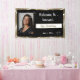 Borde con aspecto de seda dorada, destellos blancos, cumpleaños, pancarta personalizada. Agrega tu foto y personaliza con tu nombre y fecha. Cambia la edad para adecuarla a tu celebración. Se puede usar para Sweet Sixteen, Bat Mitzvah y Quinceañera editando el texto.