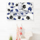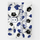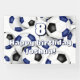 Este cartel de la fiesta de cumpleaños temática del fútbol es completamente de personalizable y cuenta con pelotas de fútbol azules, negros y blancos arregladas al azar - personalice su mensaje personalizado y la edad del niño - de katz_d_zynes