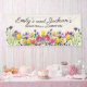 Flores silvestres coloridas de color rosa, púrpura, amarillo y rojo acuarela - banner de compromiso personalizado con los nombres de la novia y el novio.