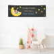 ¡Acoja con satisfacción el pequeño milagro que centellea como una estrella con esta bandera linda y elegante de la fiesta de bienvenida al bebé! Tiene un bebé adorable el dormir dichosamente en la luna creciente. Atado encima de las estrellas chispee, brille y brille maravillosamente como contraste agradable contra el fondo gris. ¡Grande como contexto para una celebración de la fiesta de bienvenida al bebé! El texto lee "centelleo del centelleo poca estrella" que usted pueda personalizar con su propio mensaje para el poco uno.