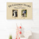Celebrate a beautiful milestone with this champagne gold 50 golden years anniversary banner featuring a heartfelt photo timeline from wedding day to today. The elegant design highlights the couple’s names, anniversary date, and two meaningful photos that tell the story of a lifetime together. Warm champagne tones and classic typography create a refined backdrop perfect for anniversary receptions, memory tables, or photo areas. Display it behind the cake table, at the party entrance, or as a focal point where guests gather to honor fifty wonderful years of marriage.
