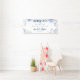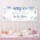 Bandera de shower nupcial floral con flores de acuarela en lila y azul claro que puedes personalizar para cualquier ocasión especial como un baby shower, fiesta de compromiso, fiesta de cumpleaños, aniversarios, reuniones familiares y mucho más. Edita el texto haciendo clic en el botón "Personalizar" arriba y haz clic en el botón azul "Personalizar" para reorganizar el texto, cambiar las fuentes y los colores de fondo si lo deseas.