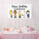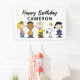 Celebre con estilo con este cartel de cumpleaños con temática de cacahuetes que incluye a Charlie Brown y la banda. Personalízalo con el nombre del niño de cumpleaños para crear un ambiente festivo y memorable. Perfecto para los aficionados a los queridos personajes de los maníes, este banner añade encanto y diversión a cualquier celebración de cumpleaños.