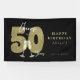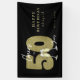 Elegant black and gold “Cheers to 50 Years” design with faux gold number 50 and champagne glasses, which can be customized with your own name and birthday/party date.