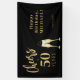 Modern gold and black Cheers to 50 years Happy Birthday name personalized party banner featuring champagne flutes and bold typography script.