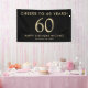 Celebrate in sophisticated style with this black and gold 60th birthday banner. Featuring the headline “Cheers to 60 Years!” in a sleek modern font, this minimalist design creates a striking statement for your celebration backdrop. Perfect for milestone birthdays, photo booth décor, party entrance displays, or behind the dessert table, this custom banner adds instant elegance to your event. Personalize with the guest of honor’s name and birthday date. Ideal for men’s 60th birthday parties, cocktail soirées, or black-tie gatherings.