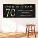Elegant black and gold 70th birthday banner welcome sign. Featuring the headline “Cheers to 70 Years!” in a simple modern font, this minimalist design creates a striking statement for your celebration backdrop. Perfect for milestone birthdays, photo booth décor, party entrance displays, or behind the dessert table, this custom banner adds instant elegance to your event. Personalize with the guest of honor’s name. Ideal for men’s 70th birthday parties, cocktail soirées, or black-tie gatherings.