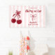 Set the scene for a sweet celebration with this charming “She’s the Cherry on Top” baby shower banner, featuring soft pink stripes, playful cherry graphics, and dainty bow accents. The bold yet feminine design makes a standout backdrop for dessert tables, gift areas, or photo moments. Perfect for creating a cohesive, Instagram-worthy party setup.