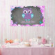Señal de fondo de pared de mesa de búho chica, banner de vinilo.