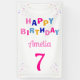 Pancarta de cumpleaños feliz Chica de las Estrellas Rosadas. Este colorido y divertido paisaje de cumpleaños es perfecto como decoración de fiesta de cumpleaños chica. Personalizó la pancarta con su nombre y edad.