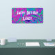 Mi hija y yo creamos este diseño de remolino fresco en verde verde azulado brillante, morado, azul y rosa caliente. Añadimos un purpurina falso para un efecto espumoso. Crea el escenario perfecto para tu increíble fiesta de cumpleaños de fiesta delgado. "Happy Birthday Laney" está escrito en un guión divertido. Agregue el nombre del niño de cumpleaños a este cartel personalizado de la fiesta de cumpleaños. O se puede personalizar el texto a otras palabras en los gruesos movimientos de arco iris. Esta pancarta se puede usar para un fiesta delgado o simplemente para una celebración de cumpleaños brillante. Espero que tengas un fabuloso fiesta empezando con este diseño original único. Buscar otros productos de fiesta de cumpleaños delgado en mi colección.