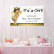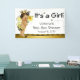 Bandera de fiesta de bebé abeja con adorable bebé étnica con un traje de abeja bumble en un bonito fondo negro y dorado con abejas volando. Puedes personalizar fácilmente esta bandera de fiesta de bebé abeja para tu evento simplemente agregando el texto que desees en el estilo de fuente que prefieras.