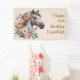 Celebra su cumpleaños 14 con estilo con esta romántica pancarta de cumpleaños llena de flores, que incluye un elegante caballo gris enmarcado por un exuberante ramo de rosas del jardín, dahlias y flores silvestres. El suave fondo de melocotón y los cálidos tonos de color rubor, marfil y coral le dan un toque elegante y femenino, perfecto para los adolescentes amantes del caballo y las celebraciones relacionadas con el jardín. Personalizado con el nombre y la edad del chica de cumpleaños, este banner hace un impresionante telón de fondo fiesta o decoración de estilo.