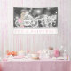 Bandera de baby shower de princesa rosa con adorable princesa que lleva pantalones de volantes rosa claro y corona en un hermoso fondo de carruaje de princesa gris con brillo. Puedes personalizar con el texto de nuestra elección.