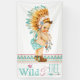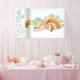 Pancarta de chicas tribal de ducha de bebé con una linda niña usando ropa azul turquesa pastel de nativos americanos nativos americanos de origen indio en un bonito de diseño azteca pastel. Puedes añadir el texto de tu elección para personalizar este adorable banner de baño tribal de boho para tu evento.
