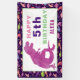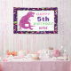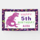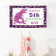 Chicas marchosas púrpuras del cumpleaños de T-Rex del dinosaurio de la acuarela interiores o bandera al aire libre. El dinosaurio de la acuarela embroma fuentes de la fiesta de cumpleaños. www.SamannDesigns.com