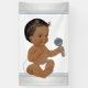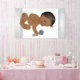 Bandera de chico étnico para fiesta de bebé con adorable bebé étnico con sonajero y sobre un fondo plateado y azul. Puedes agregar texto para personalizar esta linda bandera de fiesta de bebé étnico y puedes agregar un color de fondo.