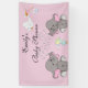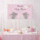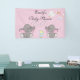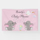 Adorables elefantes están duchando a un lindo pájaro azul. Gotitas de agua salpican de las trompas de los elefantes pero el pajarito tiene su paraguas listo. Todos los elementos de diseño se pueden mover y cambiar de tamaño para adaptarse a todos los tamaños de pancarta. Personaliza con nombre y fecha.