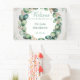 Una delicada tarjeta de felicitación de boda que presenta una hermosa guirnalda de eucalipto en acuarela en tonos de verde menta y verde salvia que rodea un sutil fondo blanco texturizado. La guirnalda incorpora ramitas dispersas de flor de bebé y pequeños acentos parecidos a perlas, creando un ambiente elegante y ligeramente rústico, con un suave resplandor que realza el efecto de acuarela. En el centro de la guirnalda, el texto "POR SIEMPRE & SIEMPRE" se muestra en una fuente de letra moderna y fluida en un gris plateado suave, que complementa los tonos naturales y evoca una sensación de romance atemporal. El interior de la tarjeta proporciona espacio suficiente para un mensaje sincero e incorpora una ilustración simplificada de ramita de eucalipto en la esquina inferior, manteniendo el tono emocional sereno y celebratorio.