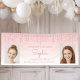 Bienvenidos invitados a la fiesta de graduación o simplemente anuncien su logro con esta moda, glamorosa pancarta de fotos, con un brillante purpurina rosado goteo en la frontera y un fondo sombrío. Reemplace fácilmente las dos imágenes de muestra con fotos del graduado. Personalízalo con su nombre en escritura a mano rosa, con el año de clase y la escuela en letra sans serif. Perfecto para graduación de secundaria o universitaria.