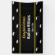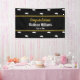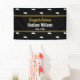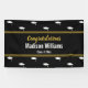 Este cartel de graduación en blanco y oro negro tiene un patrón de gorras blancas de graduación en el fondo. En el centro, hay un texto que puedes personalizar con un mensaje personalizado (se muestra: Felicitaciones), el nombre del graduado y el año en que el estudiante se gradúa. El guión falso de oro es una representación artística (no es Relieve metalizado).