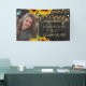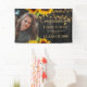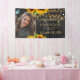 Elegantes felicitaciones florales rusticas por invitación de grado o banner fiesta con ramos de girasoles, madera de grano marrón oscuro y cuerdas de luces intermitentes, y un guión falso de tipografía de moda dorada.+++++ Fácil de personalizar con tu imagen, nombre, escuela y clase.