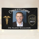 Pancarta de fotos de felicitaciones modernas con el signo médico de oro caduceus, La manera perfecta de honrar a una nueva escuela de medicina, escuela de enfermería o graduado en odontología. Añadir título/nombre y foto. Texto de felicitaciones blancas al estilo tipográfico.