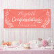 Banner de elementos florales de estilo y moda para tu estudiante graduado. Personaliza con tu nombre y año de graduación para crear tu propio cartel de personalizado. Texto de felicitaciones al estilo tipográfico acentuado con elementos blancos de diseño. Este cartel de graduación es perfecto como parte de la decoración fiesta o como telón de fondo fiesta. El color de fondo coral puede cambiarse al color que elija.
