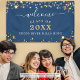 Cree un cartel de bienvenida de la reunión de clase con el título BIENVENIDOS en una tipografía de escritura manuscrita moderna, clase de año y nombre de su escuela, universidad u otro texto personalizado acentuado con estrellas doradas y luces de cuerda en un fondo azul editable que puede cambiar al color de su escuela. CAMBIOS: cambie el color de fondo o cualquier estilo de fuente de texto, tamaño, color, espaciado y ubicación en EDIT. OPCIONES DE BANNER: El ejemplo se muestra en el tamaño de 3x5'; hay otros tamaños disponibles en la página de pedidos, así como la opción de transferir el diseño a una placa de espuma, poster, tapiz u otro producto o hacer que el diseñador lo convierta a un archivo DIGITAL DESCARGADO para imprimirlo localmente ANTES de realizar el pedido. ASISTENCIA: Para obtener ayuda con la modificación/personalización del diseño, el cambio de color, el redimensionamiento, la transferencia del diseño a otro producto o si desea coordinar elementos, póngase en contacto con el diseñador ANTES DE PEDIRLO a través de Zazzle Chat o makeitaboutyoustore@gmail.com.