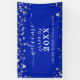 Cree un cartel de bienvenida de la reunión de clase con el título BIENVENIDOS en una tipografía de escritura manuscrita moderna, clase de año y nombre de su escuela, universidad u otro texto personalizado acentuado con estrellas plateadas y luces de cuerda contra un fondo azul real editable que puede cambiar al color de su escuela. CAMBIOS: cambie el color de fondo o cualquier estilo de fuente de texto, tamaño, color, espaciado y ubicación en EDIT. OPCIONES DE BANNER: El ejemplo se muestra en el tamaño de 3x5'; hay otros tamaños disponibles en la página de pedidos, así como la opción de transferir el diseño a una placa de espuma, poster, tapiz u otro producto o hacer que el diseñador lo convierta a un archivo DIGITAL DESCARGADO para imprimirlo localmente ANTES de realizar el pedido. ASISTENCIA: Para obtener ayuda con la modificación/personalización del diseño, el cambio de color, el redimensionamiento, la transferencia del diseño a otro producto o si desea coordinar elementos, póngase en contacto con el diseñador ANTES DE PEDIRLO a través de Zazzle Chat o makeitaboutyoustore@gmail.com.