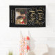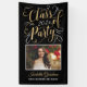 Stylish graduation party banner features an elegant "Class of 2023 Party" design in faux gold foil script with pretty white scroll accents. Personalize this design with a senior photo of the graduate, and use the elegant custom text for their name and school. Note, the black background color can be modified to coordinate with school or party colors.