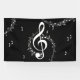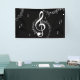 G Clef entre notas blancas de música en negro. El fondo negro hace que aparezcan las notas blancas brillantes.