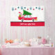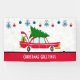 Lona Coche rojo retro que lleva un árbol de Navidad