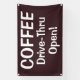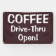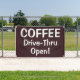 This bright banner will let customers see your coffee shop or booth drive-through is open and ready for business! It features clear, easy-to-read lettering to catch attention. Feel free to customize this signage with your own words, if you like!