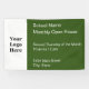 Esta pancarta verde oscuro y blanco tiene un logo y una plantilla de texto para una casa abierta escolar. Una parte tiene una imagen de pantalla que se reemplaza con el logotipo de la escuela. La otra sección tiene seis líneas de texto en blanco que puede editar para mostrar el nombre de la escuela y los detalles del evento.