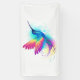Colibrí luminoso, irrisorio, exótico volador sobre fondo blanco, pintado con pintura multicolor, acuarela. Colibrí arcoiris.
