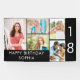 Pancarta personalizada que celebra el 18° cumpleaños - ¡o personalizar para cualquier otra edad! La plantilla de fotos está configurada para que añadas 5 de tus fotos favoritas que se muestran en un collage de fotos de formatos horizontales y verticales de retratos. El texto simplemente dice "Feliz cumpleaños [tu nombre]" en la tipografía impresa moderna y "18" también es editable si quieres este diseño para un cumpleaños diferente. Si desea realizar más personalizares o cambiar el fondo y los colores del texto, haga clic en el botón para editar utilizando la herramienta de diseño.