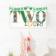 Dos banner fiesta de segundo cumpleaños con collage de fotos personalizado y opción para añadir un nombre o evento. La plantilla de fotos está preparada para que añadas 9 de tus fotos favoritas, que forman parte de la palabra DOS. La suerte está impresa con letras extravagantes a mano con una afortunada herradura. El paquete shamrock se puede personalizar con un nombre o evento, o puedes borrar las letras si lo deseas.