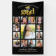 Anuncia al mundo que tu graduado favorito ha alcanzado su meta con este gráfico, impresionante, simple, moderno y personalizado banner de recuerdo de graduación de escuela secundaria K - 12. Una divertida y juguetona visual con tipografía blanca en negrita, tipografía de graduado con foil dorado falso e icono de gorra, junto con su nombre, año de clase, escuela y 13 fotos de tu elección, sobre un fondo dramático y negro. Personaliza el texto personalizado con el nombre de tu graduado, escuela y año de clase. Elige entre opciones de interior o exterior. ¡Garantizado para preservar los recuerdos queridos de su ocasión especial!