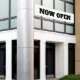 Diseñado con el mensaje de texto personalizado "NOW OPEN" en color personalizado de fondo blanco negro. ¡Puede cambiar los colores o el texto que necesite para su negocio!