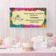 Colorful balls of scribble yarn with crochet hook on this craft show booth display banner for a wall or table, personalized with your own logo, text, fonts, and color scheme.