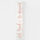 Elegante banner de la recepción de bodas presenta "Come Drink & Be Married" en un moderno guión de caligrafía de color rosa dorado con un moderno texto personalizado para felicitar a la novia y al novio. Personaliza con sus nombres y cita casada. Acento cardíaco. Se puede modificar el color de fondo blanco.