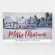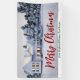 Esta hermosa pancarta de fiesta de bienes raíces personalizada es perfecta para una compañía de bienes raíces ubicada en el norte. Unas hermosas líneas de nieve blanca bordean los árboles y la casa en esta fotografía de invierno. Un agente inmobiliario puede mantener Feliz Navidad en escritura roja y verde o personalizar con sus propios saludos de temporada.