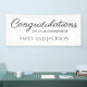 Blanco con un elegante cartel de compromiso de escritura negra "Felicitaciones por tu compromiso" personalizado con los nombres de la novia y el novio.